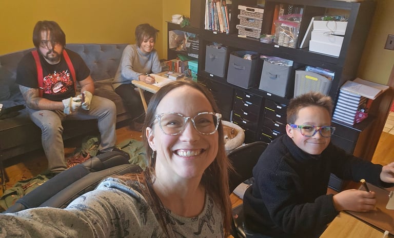 Isn’t it thrilling to step out of your comfort zone and embrace new experiences? Whether it’s going on an adventure, trying out a new recipe, or diving into a creative project, there’s so much excitement in exploring the unknown. Today Luchito is trying digital art for the first time, Magdelena is trying to draw puppies for the puppy lovers to go with her kitties design, and Lucio is starting a new larger spoon with a new type of wood with beautiful purple stripes through it. There are some struggles with trying new things and some tears too. But we try to end our art shift time on a happy note by switching back to fun comfort at the end. Being together in this supportive, fun space fills us with joy.