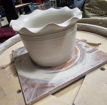 putting on an audio book, retiring to the basement after the rest of the family settled in to watch a movie. There was a small space created to squeeze in the urge to throw some clay. To see what called to be made. Thinking of Mother's Day coming, I thought about what I may want as a gift. Even though I'm not the best at being a green thumb, I like to try. Sometimes at the expense of the plant unfortunatly. Sometimes they make it. Even so, I enjoy them and planting them and trying to nourish them to stay alive. With that being said, I thought a planter sounded like a nice goal. I have some spider plant babies looking for a home. Look for this cutie with those plant babies posted for sale on our website once she's finished! Maybe she'd make a great Mother's Day gift for your mother. Thank you for reading! Until next time!